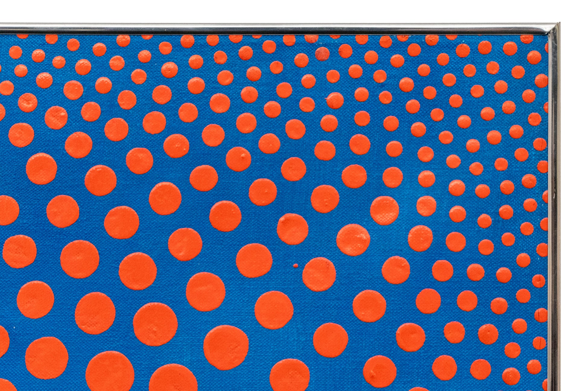 In this series, Kirkland applied dozens of individual dots to create the illusion of energy vibrating in space. This particular work is especially distinctive, as Kirkland intended it to be displayed in a diamond orientation, rather than the conventional square.