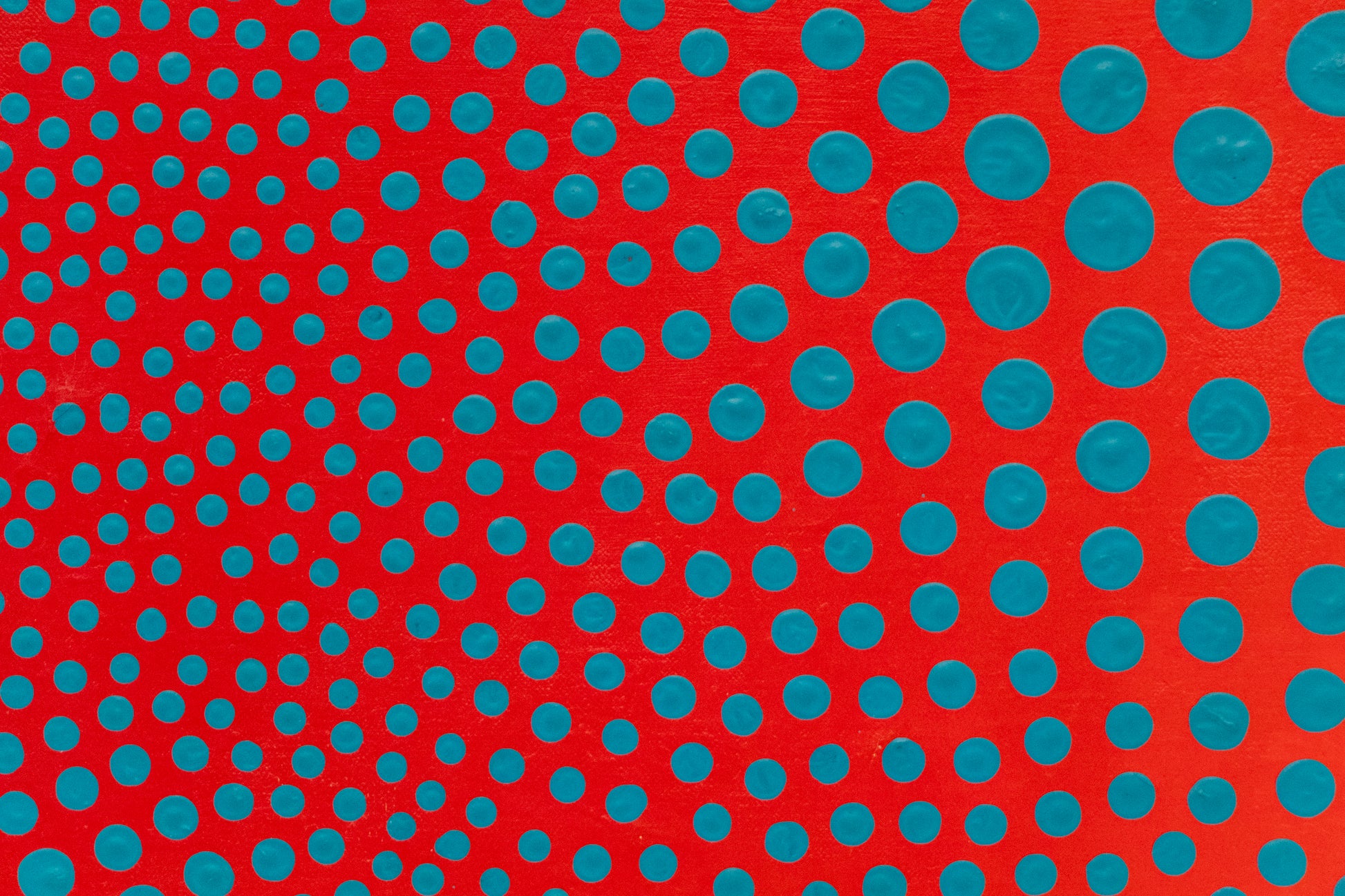Vibrations of Two Yellows in Space (1970), one of Kirkland's small subseries of "Open Sun Paintings," occupies the final phase in his first series of dot paintings, Energy of Vibrations in Space (1963-1972). Many pieces in the series incorporate his unique mixture of oil paint and water which he developed in the early 1950s. The work in the subseries - a challenge to the viewer's optic nerve - constitutes his contribution to the international realm of Op Art. Recalling the theory of pulsating galaxies and the universe, he used dots applied with dowels of different sizes to surround and leave round open spaces letting the gradient background show through. Because of the color contrast between the two, the "suns" either recede into the background or jump out in the foreground, creating the powerful pulsing effect.